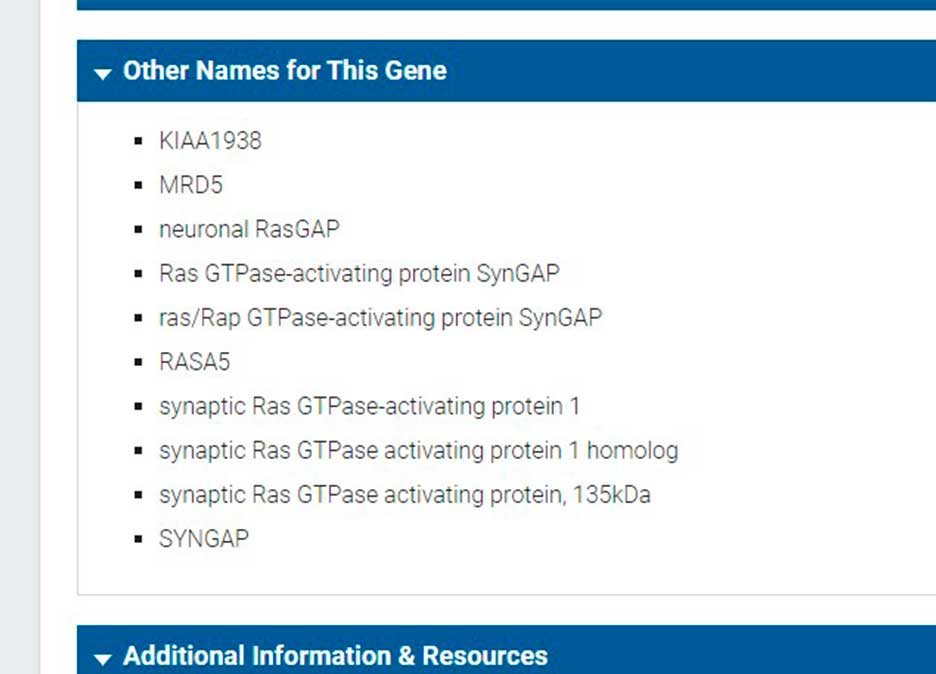Información sobre SYNGAP1 en la Wikipedia. Además, disponemos de la siguiente información adicional: Referencias Otras…